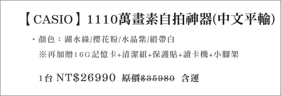 | | 詳細商品說明 | 我有去遍尋各大購物網站momo購物、yahoo奇摩購物、博客來、PChome線上購物、ibon mart搜尋優惠價格!整理資訊大致有分享文、開箱文、試用文、評鑑文、推薦文、是否便宜、優缺點等資訊.SEAN最近也對這個商品很感興趣,還有去各大拍賣網站RUTEN露天、YAHOO拍賣收集商品資料!要到處比價;尋找低價及可靠的網購地方! | RYAN不吝嗇分享他的生活點點滴滴;包括網路上購買的任何東西.RYAN是我的好朋友,為人正直又有愛心;RYAN他只會推荐好東西!因為我自己也想要了解CASIO-1110萬畫素自拍神器+贈品,所以到處尋找資訊做功課.還有去各大拍賣網站RUTEN露天、YAHOO拍賣收集商品資料!超多的鄉民很都說CASIO-1110萬畫素自拍神器+贈品 無敵好的! | ※其他推薦※